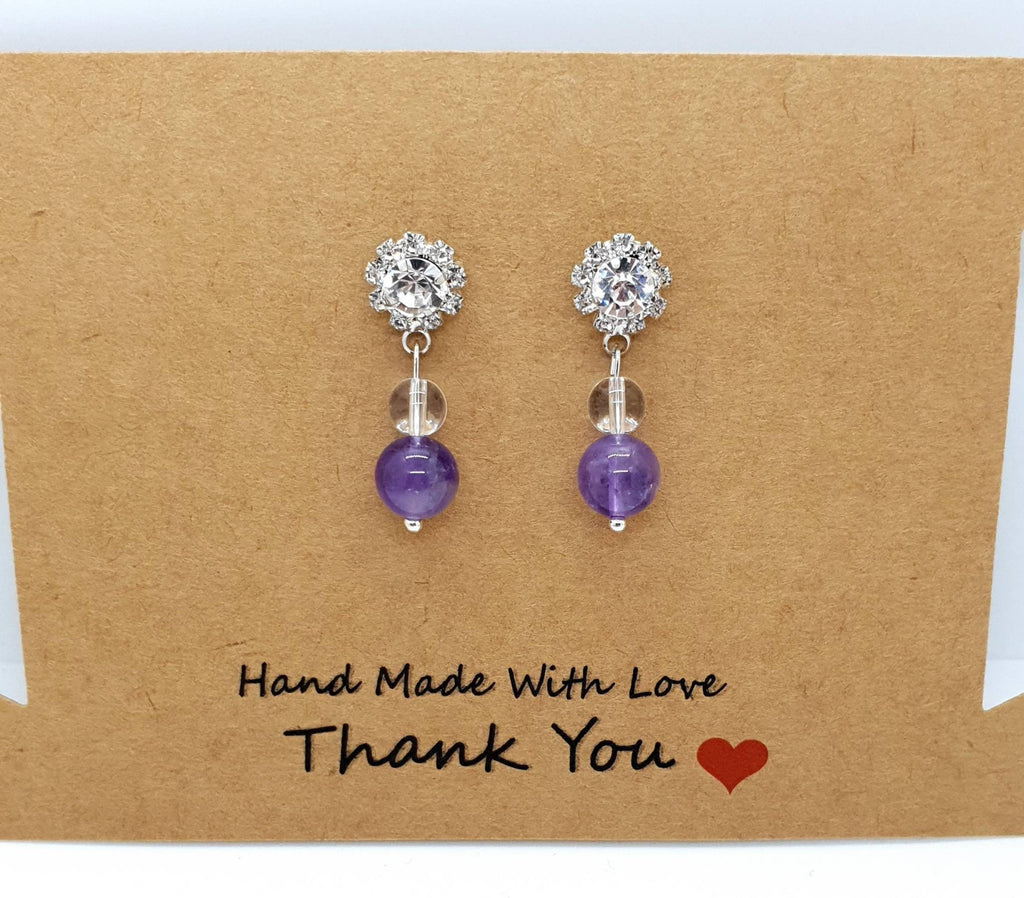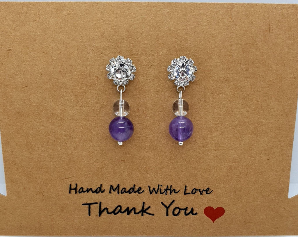 Amethyst And Clear Quartz Crystal Drop Beaded Earrings