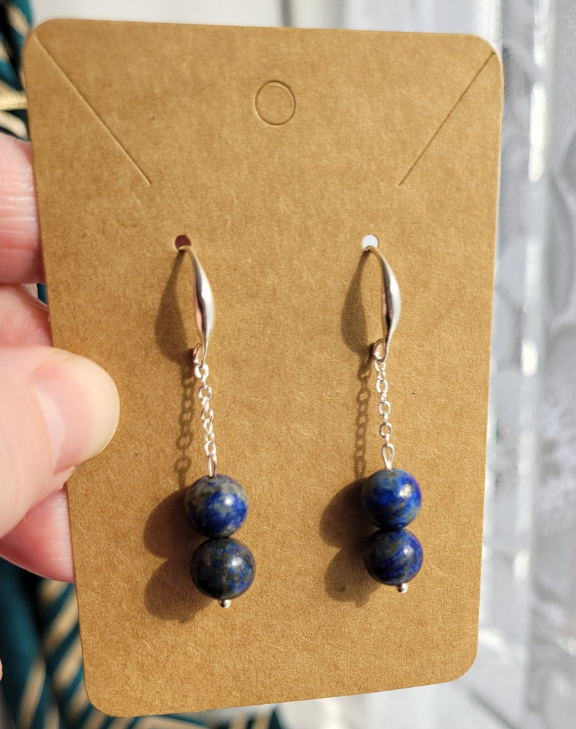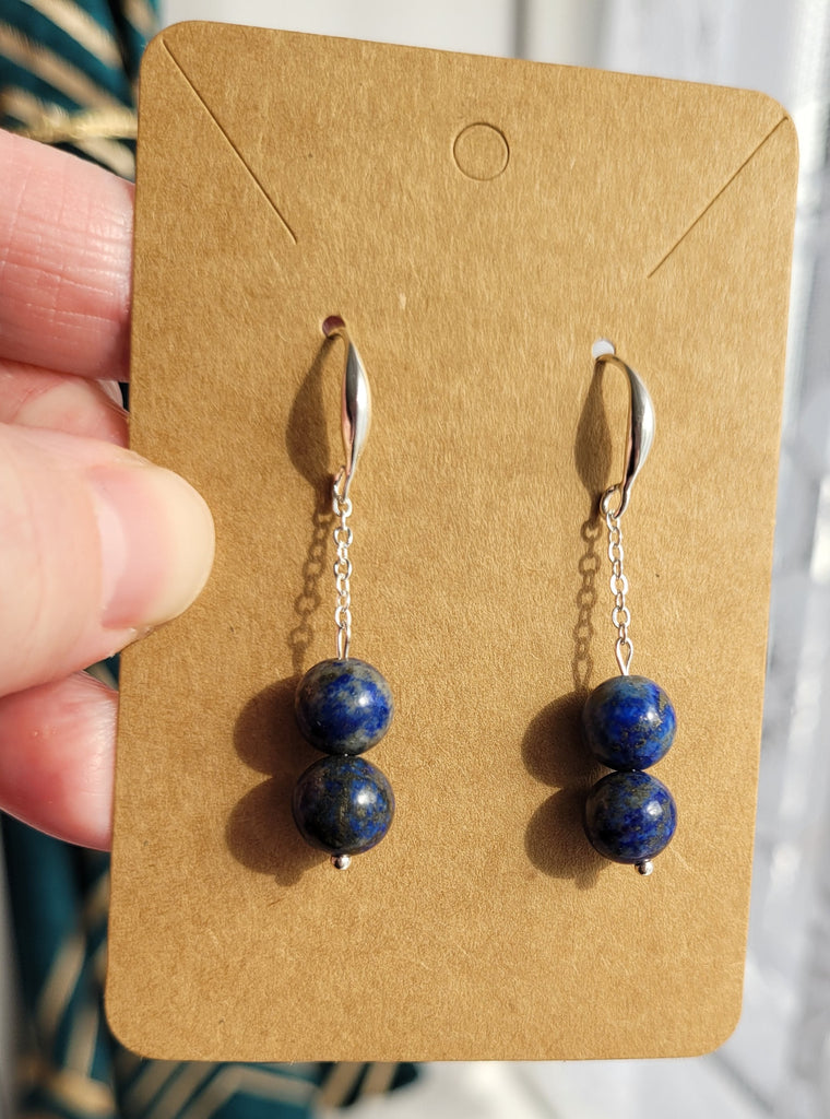 Bespoke Lapis Lazuli Crystal Silver Drop Earrings