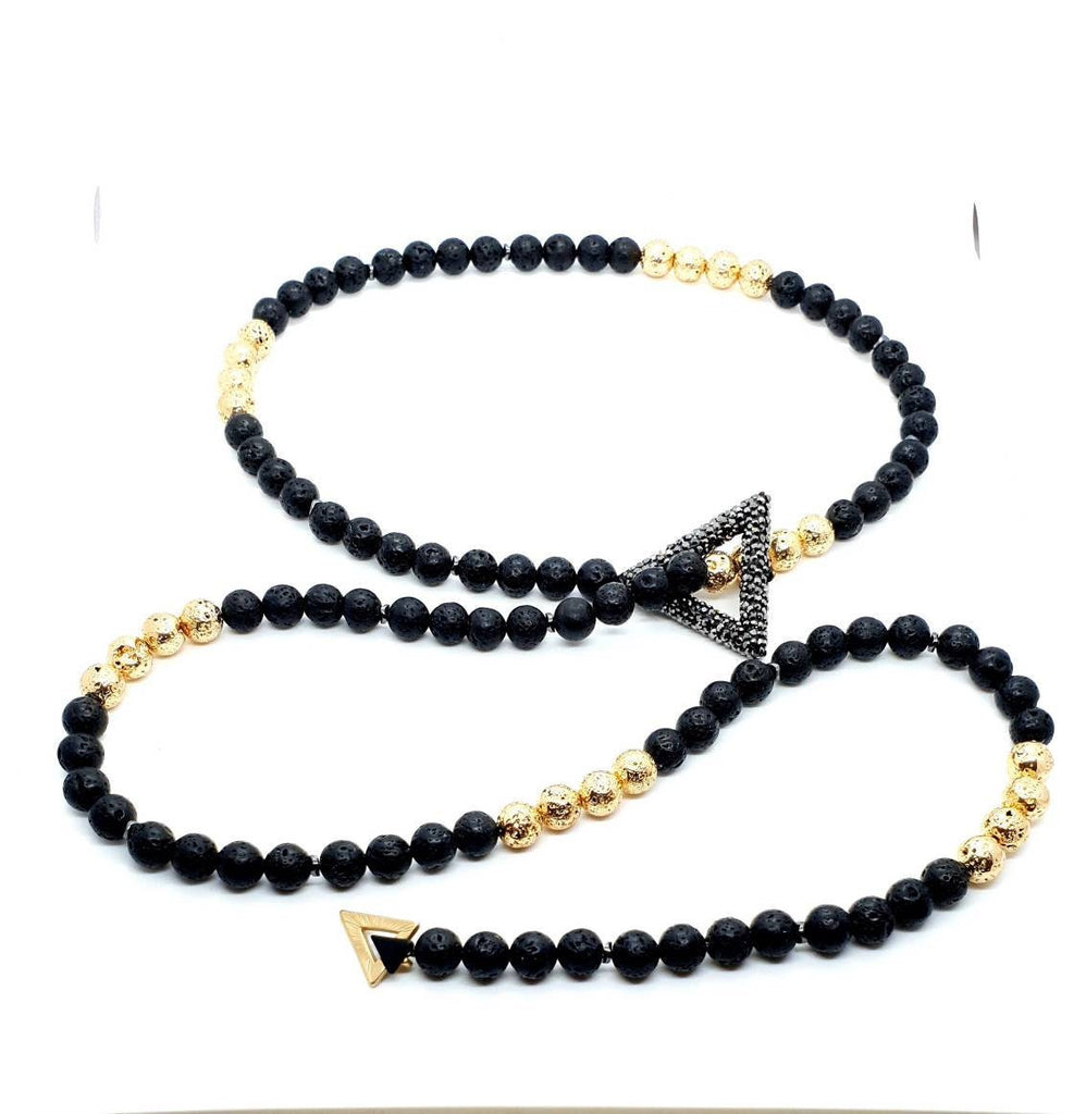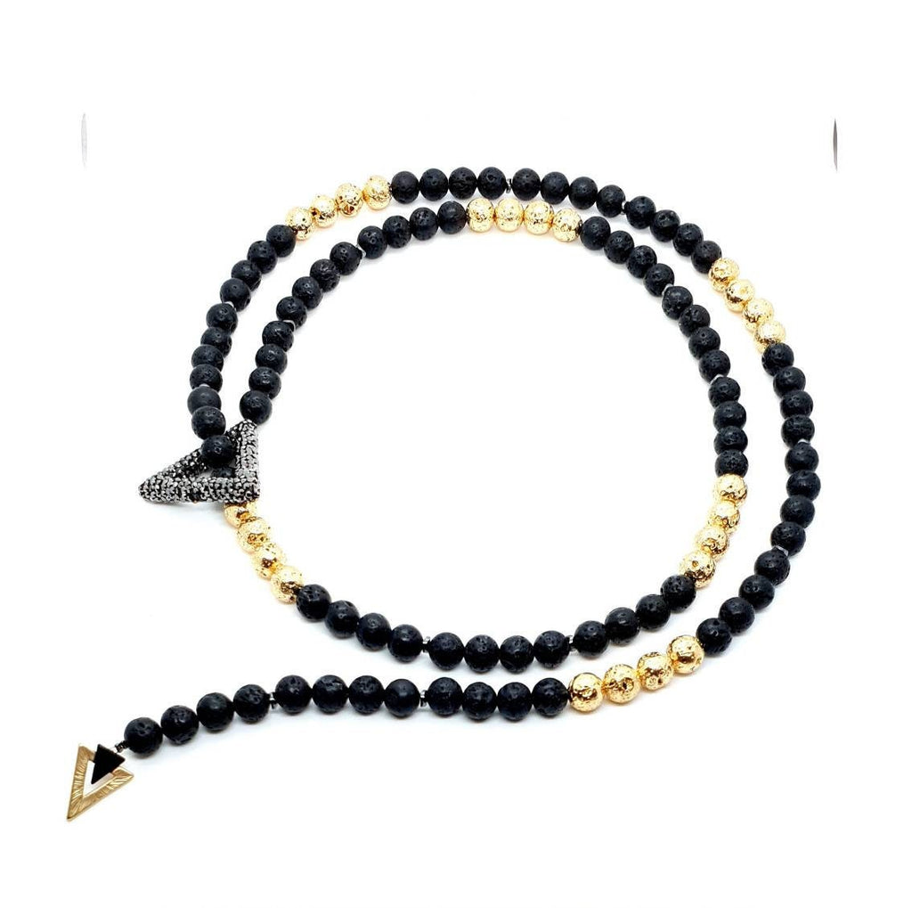 Black and Gold Lava Rock Stone Crystal Beaded Necklace