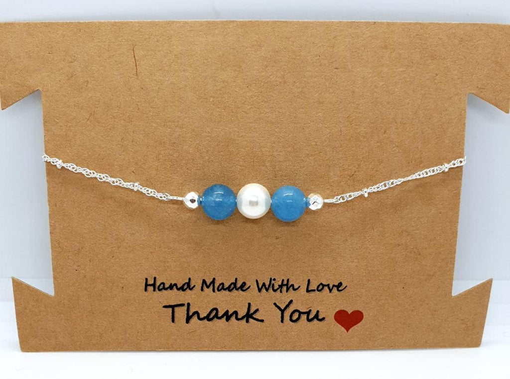 Blue Aquamarine Crystal And White Pearl Chain Bracelet
