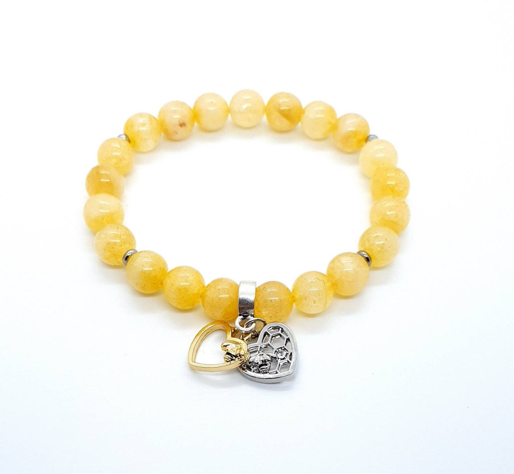 Citrine Crystal Beaded Bracelet With Gold & Silver Heart With Bee