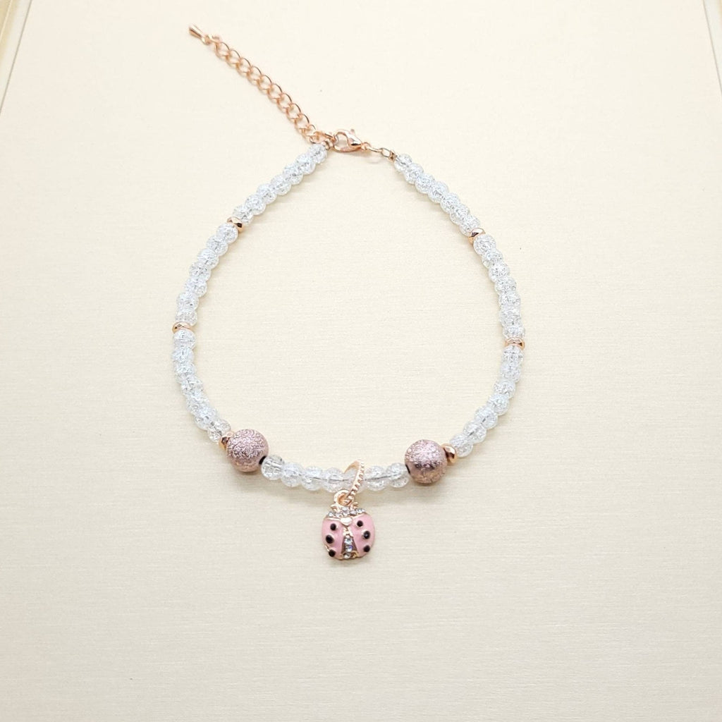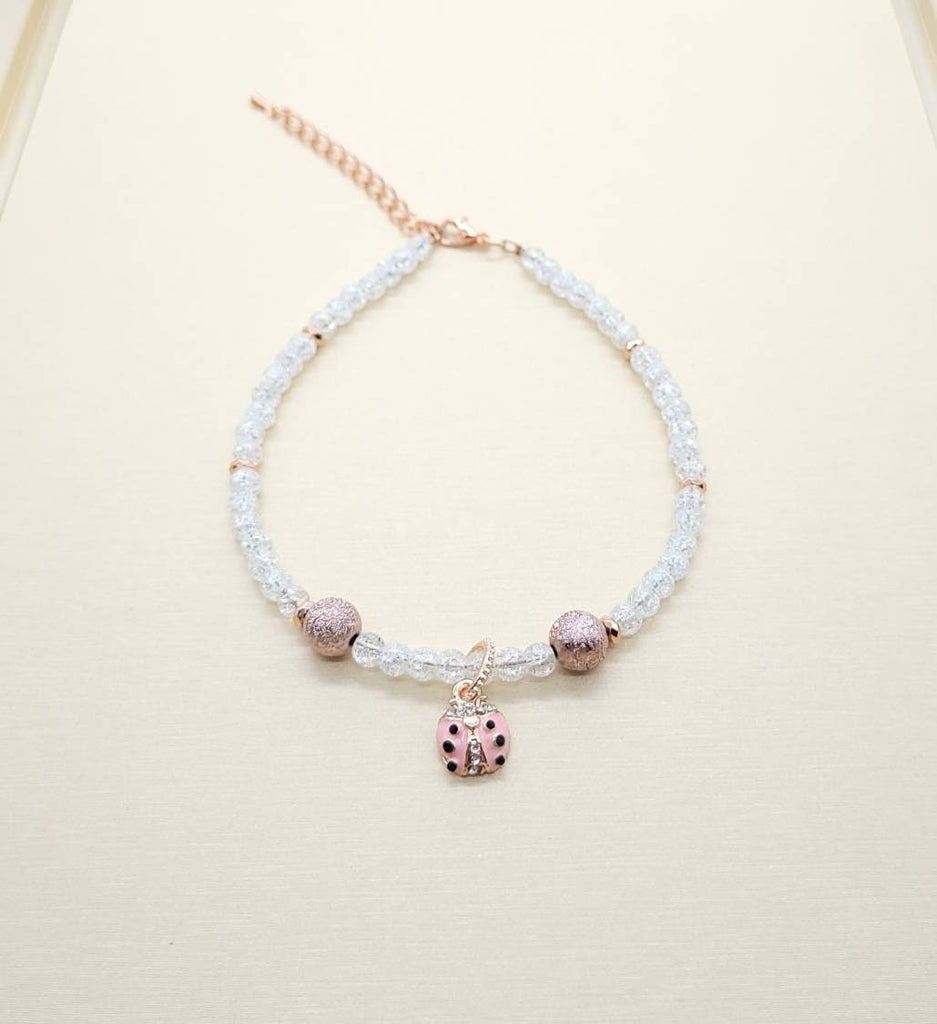 Clear Cracked Glass Anklet With Rose Gold Ladybird Charm