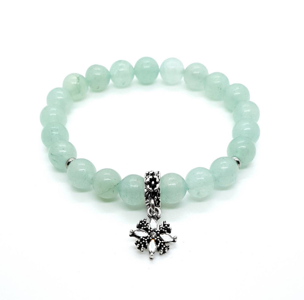 Green Aventurine Crystal Beaded Bracelet With Silver Star Charm