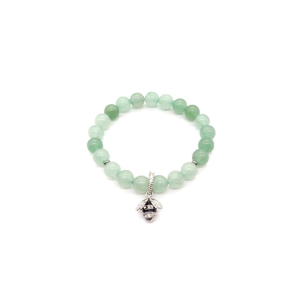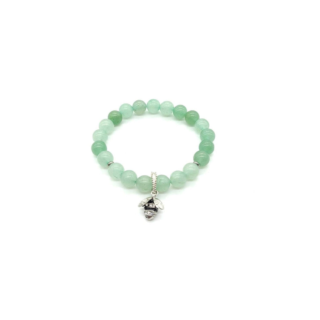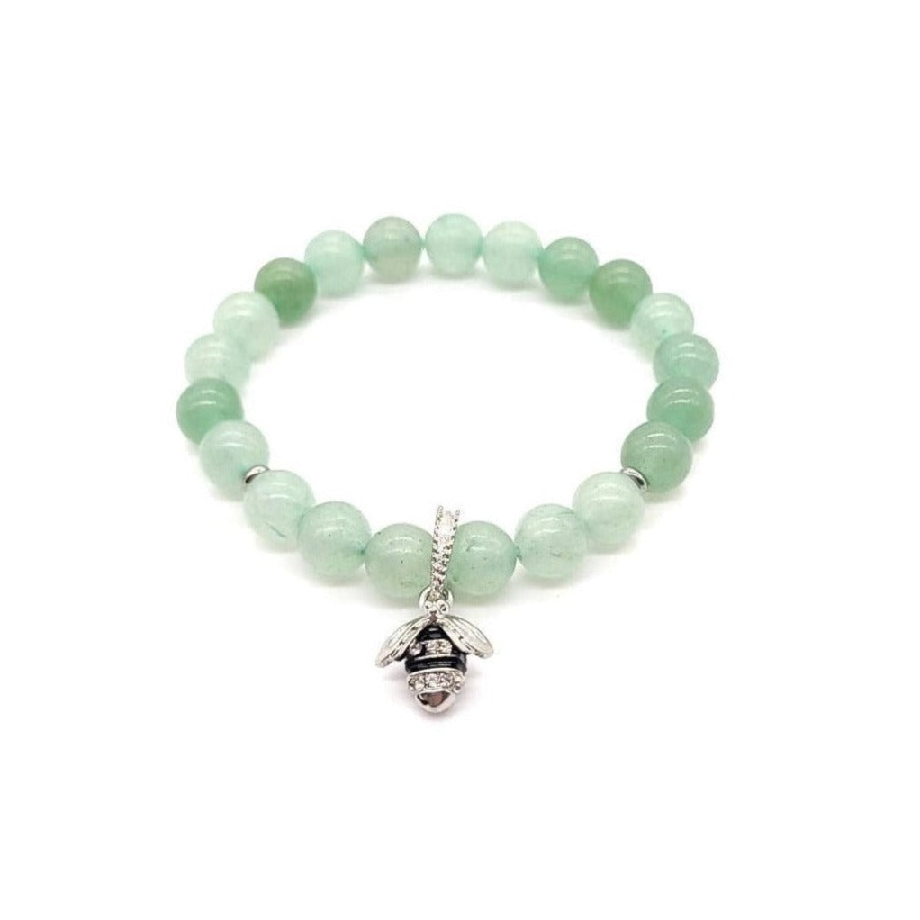 Green Aventurine Crystal Bracelet With Silver Bee Charm