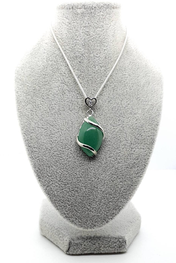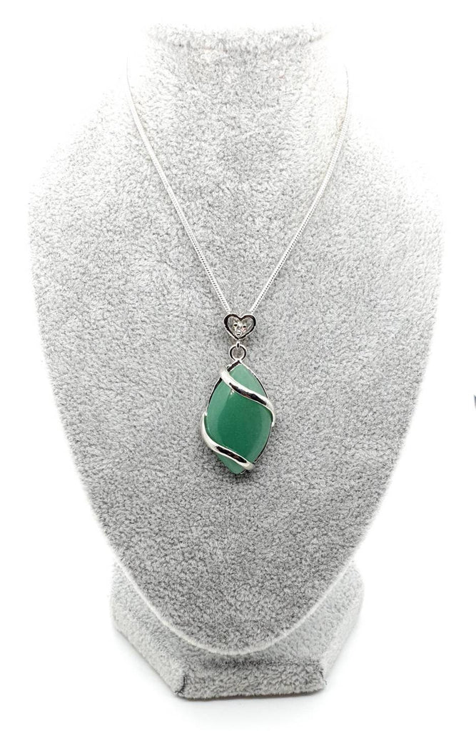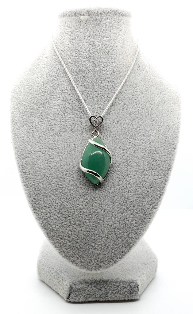 Green Aventurine Crystal Necklace Pendant With Silver Gemstone Heart