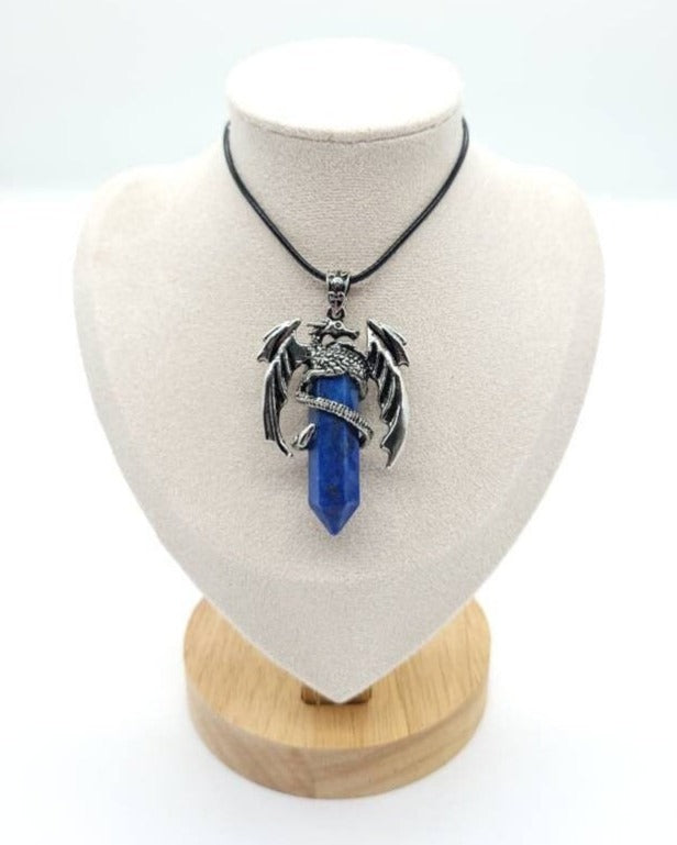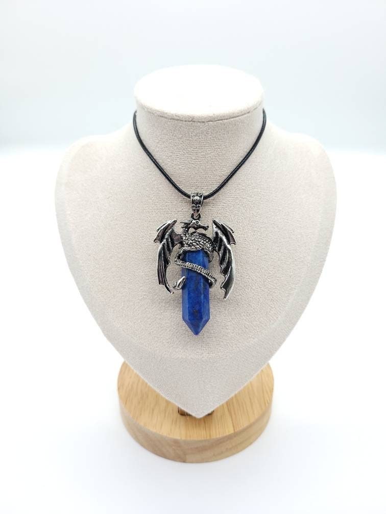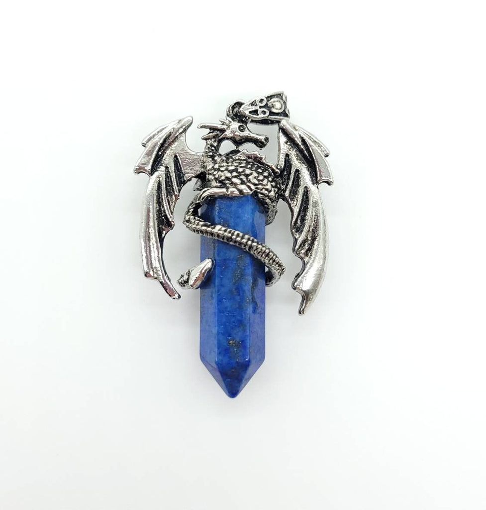 Large Point Blue Lapis Lazuli Necklace Pendant With Dragon