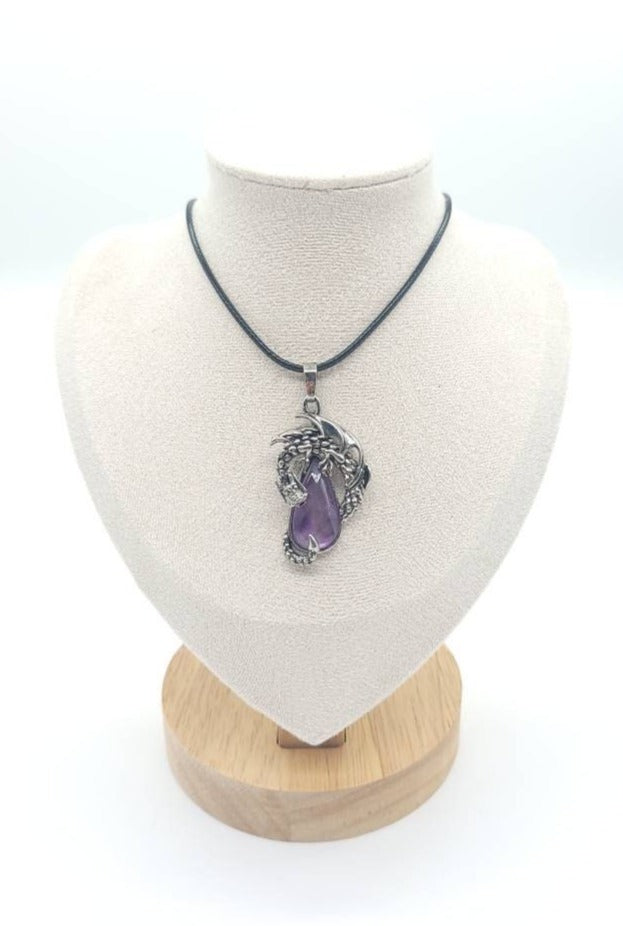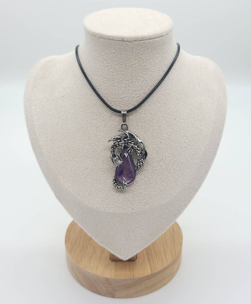 Large Teardrop Amethyst Necklace Pendant With Dragon