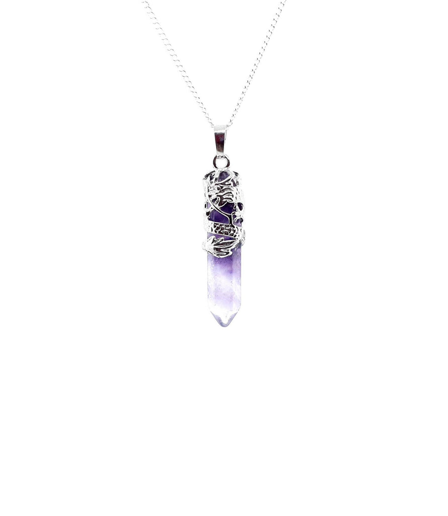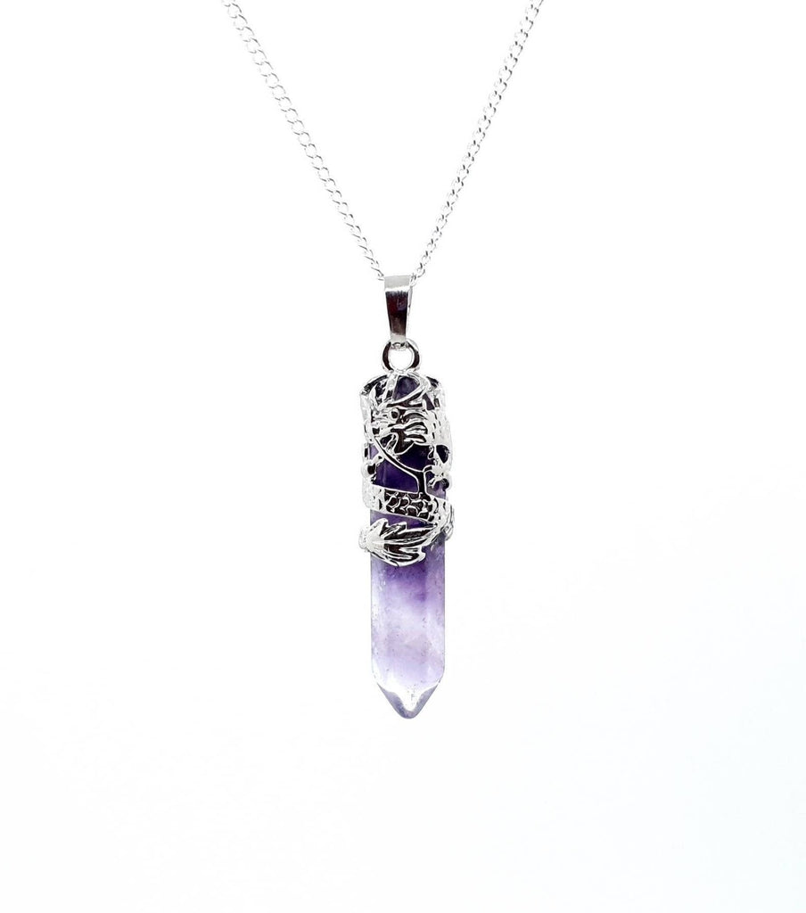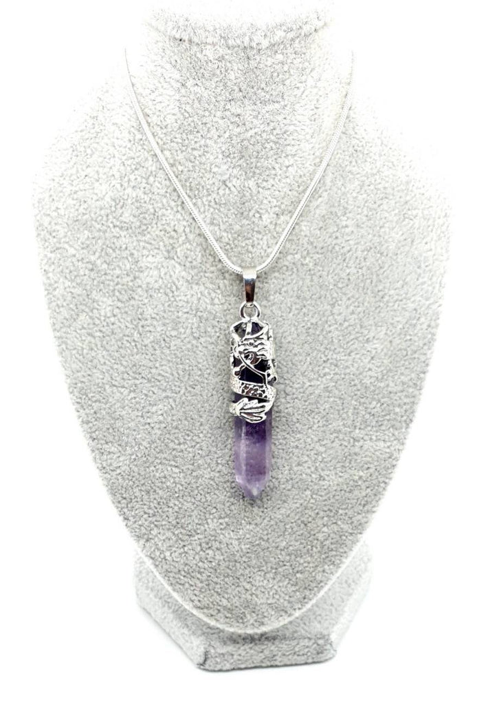 Point Purple Amethyst Necklace Pendant With Silver Dragon
