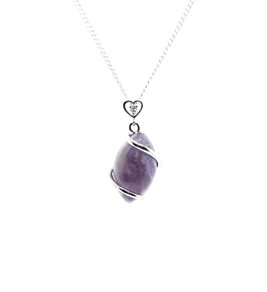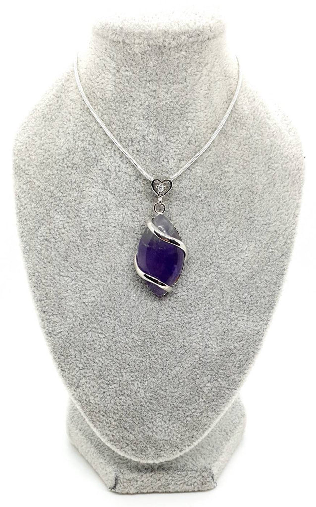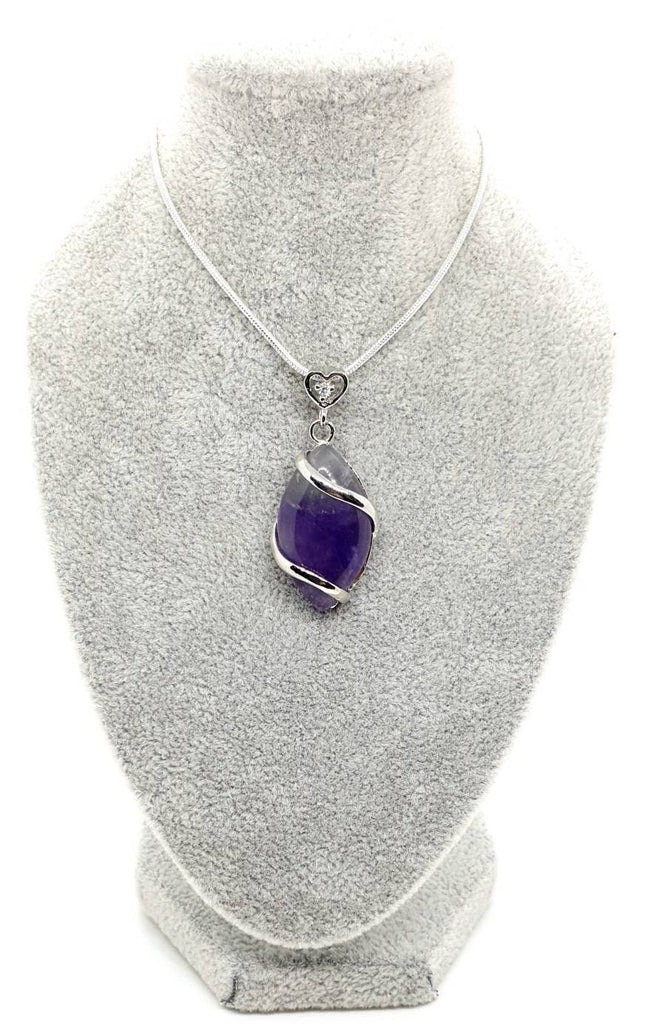 Purple Amethyst Crystal Necklace Pendant With Small Gemstone Heart