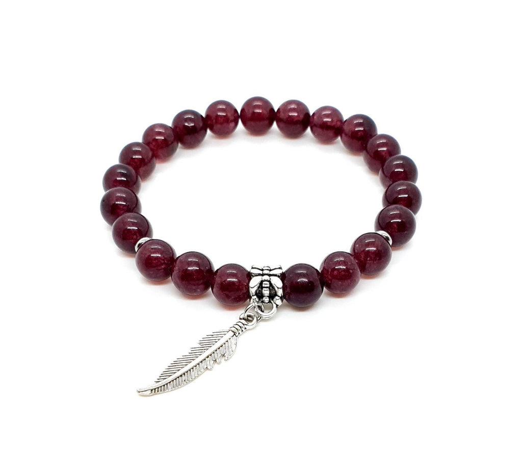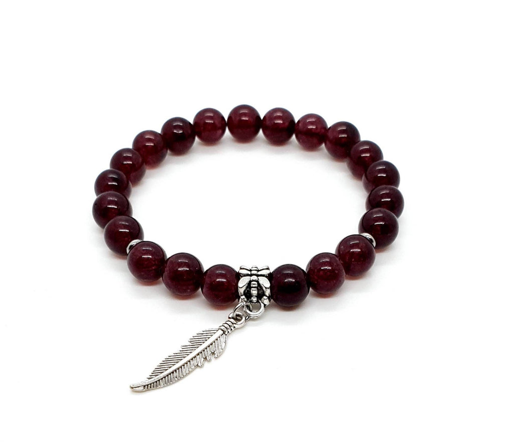 Red Garnet Crystal Bracelet With Silver Feather Charm