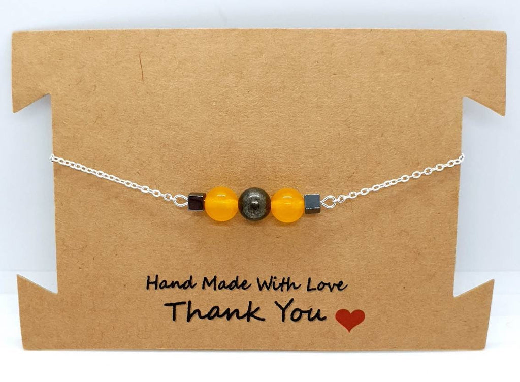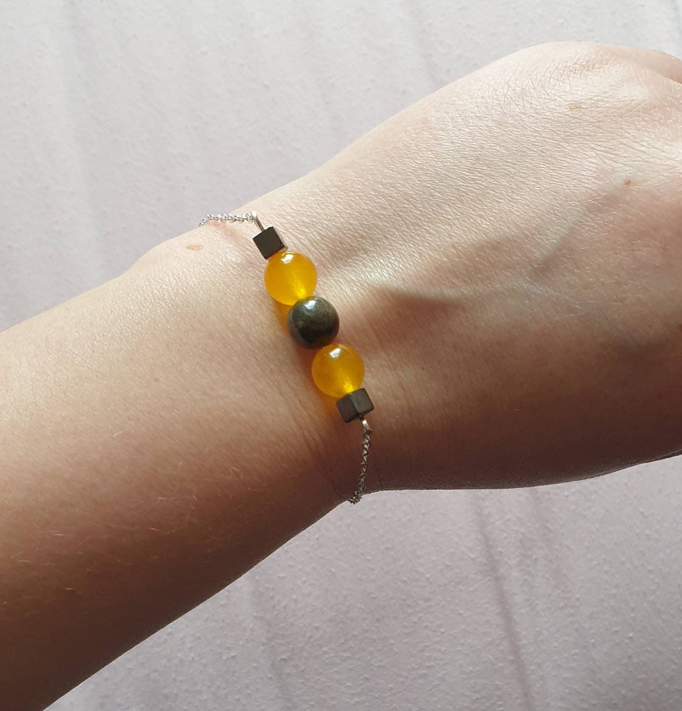 Silver Chain Bracelet With Yellow Jade and Pyrite Crystal