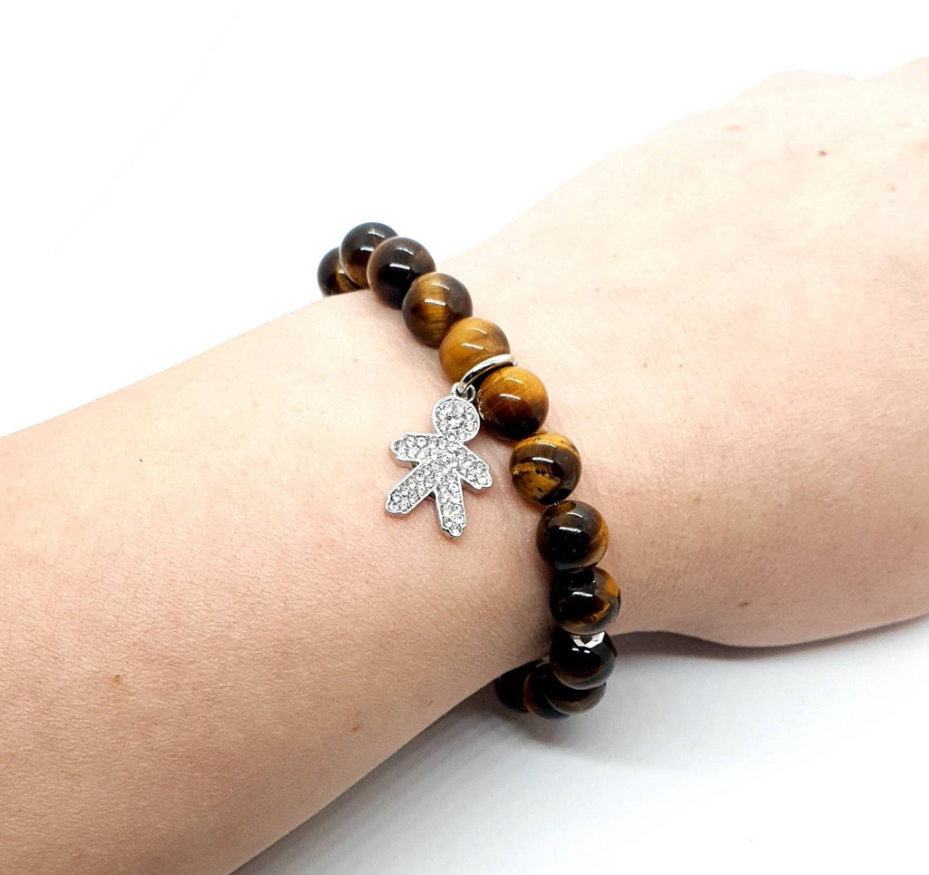 Looking for a crystal bracelet that combines beauty and benefits? Look no further than our handmade Tiger Eye Crystal Beaded Bracelet with Silver Gingerbread Man Charm!