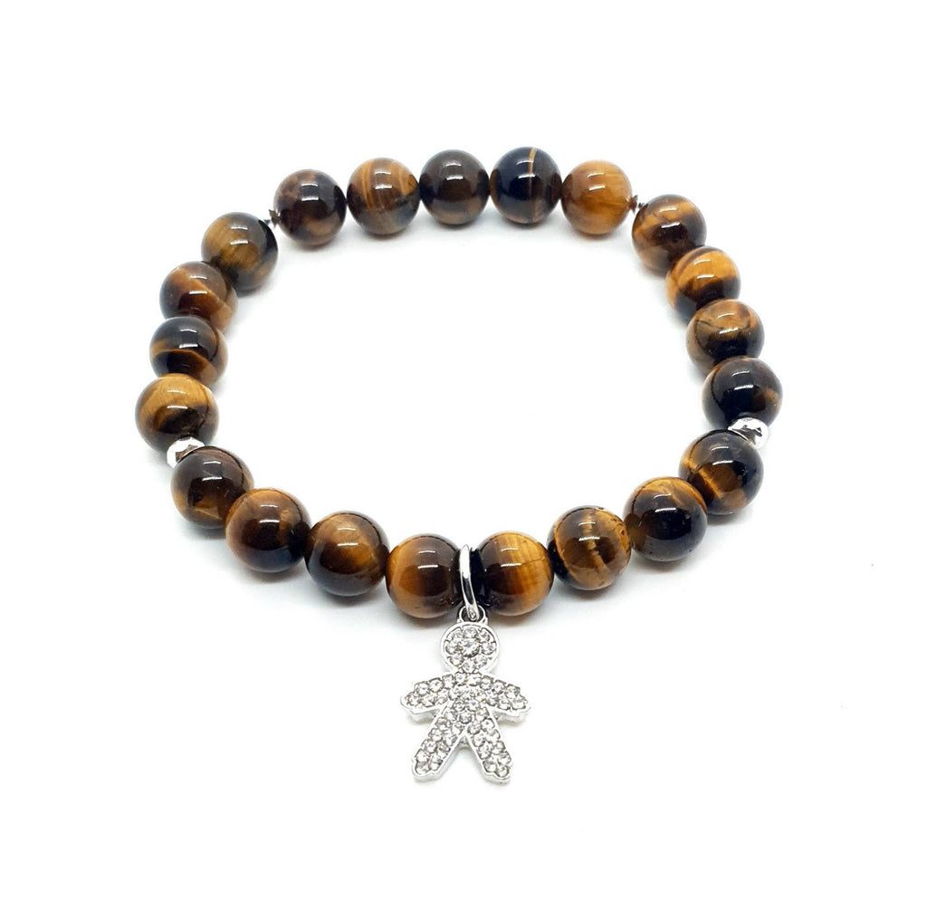 Tiger Eye Crystal Beaded Bracelet With Silver Gingerbread Man