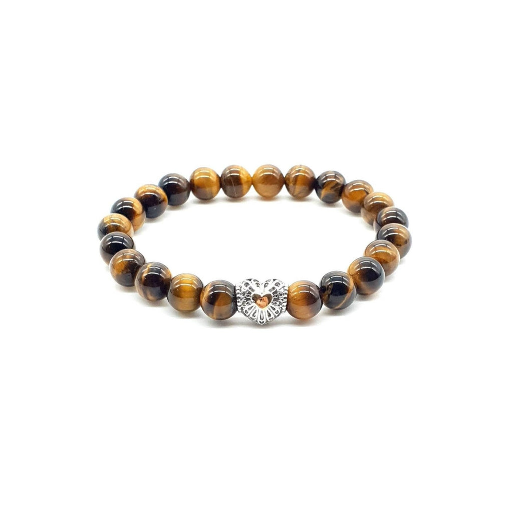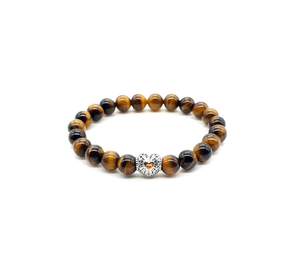 Looking for a crystal bracelet that combines beauty and benefits? Look no further than our handmade Tiger Eye Crystal Beaded Bracelet with Silver Heart Charm!