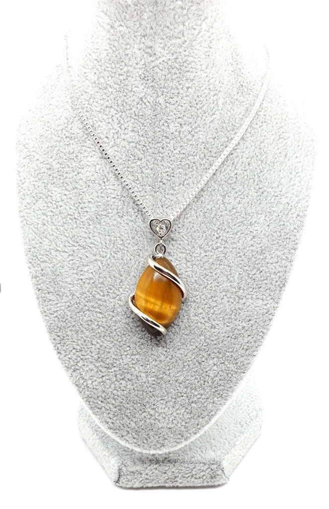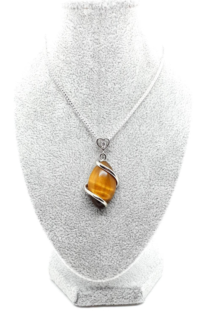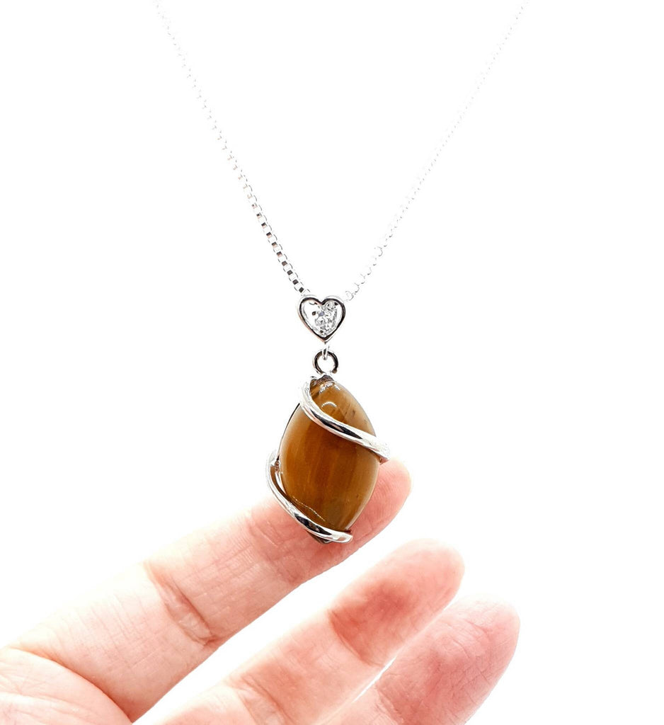 Tiger Eye Crystal Necklace Pendant With Silver Gemstone Heart