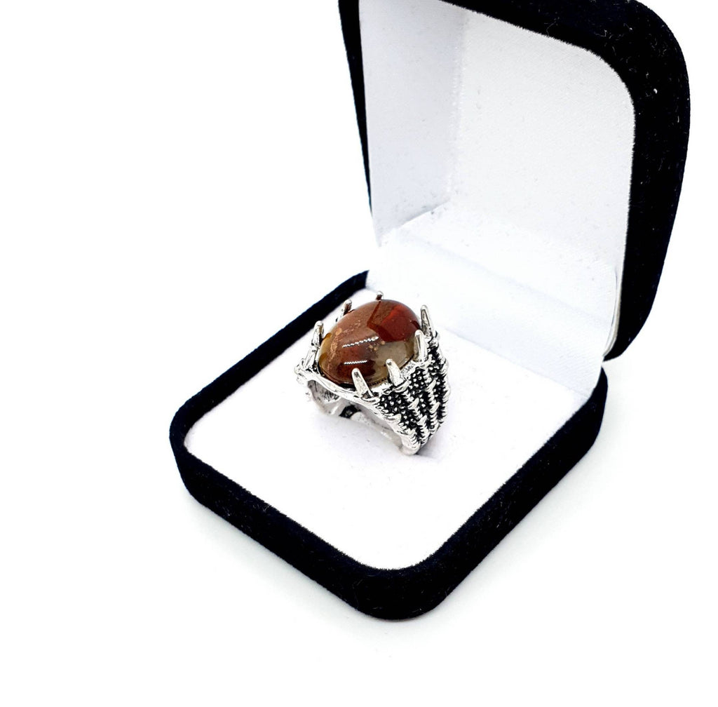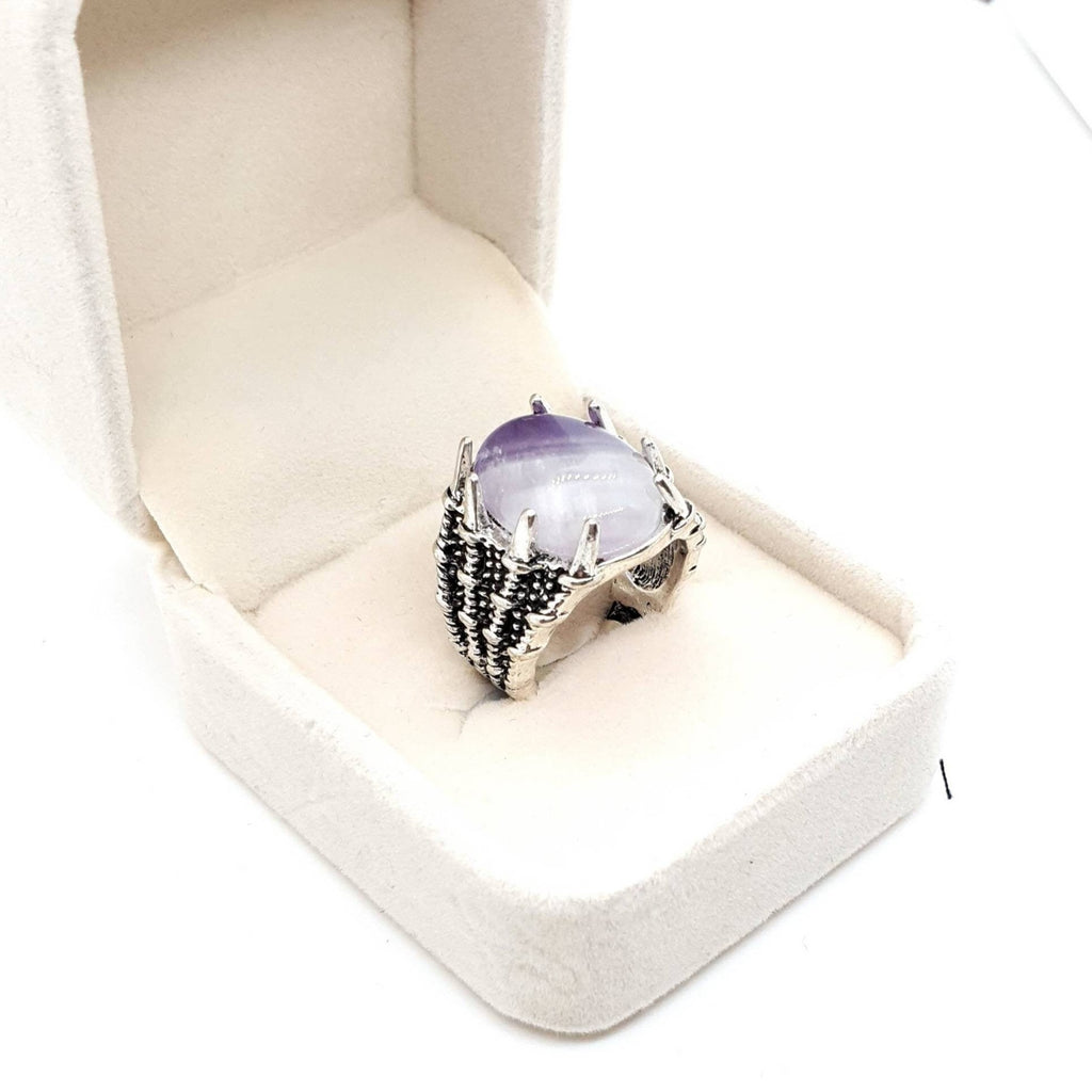 Vintage Silver Gothic Ring With Crystal Stone