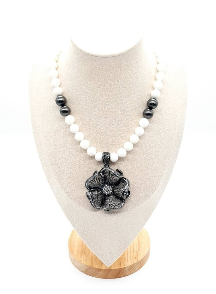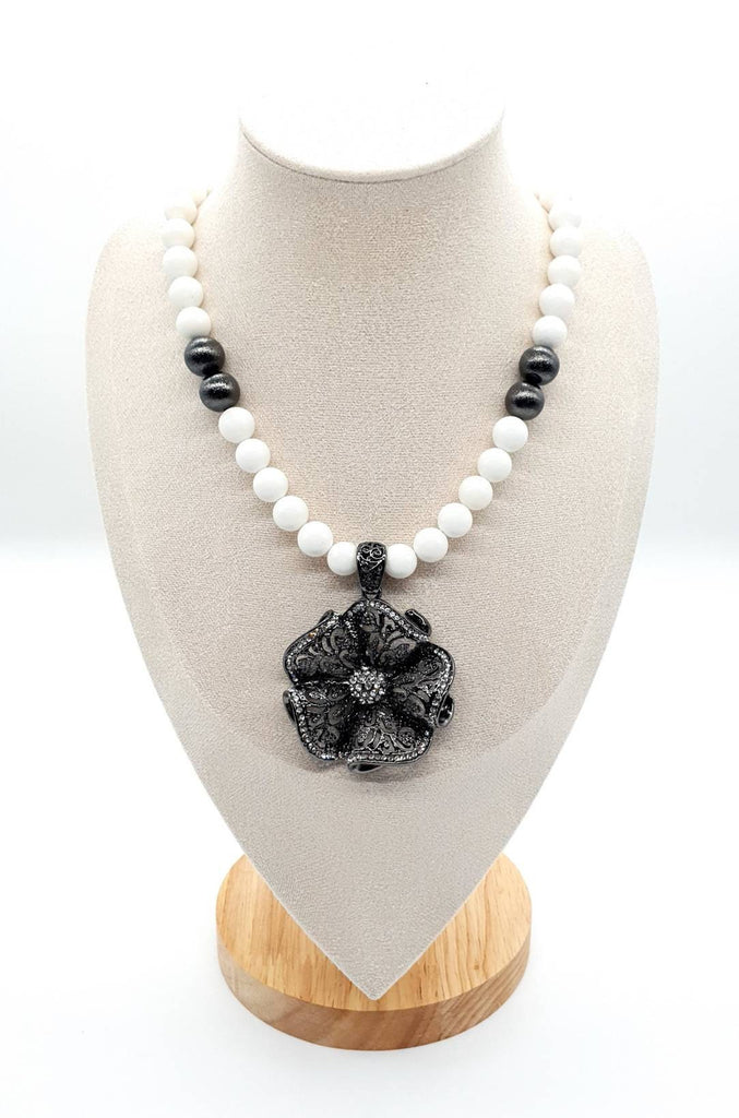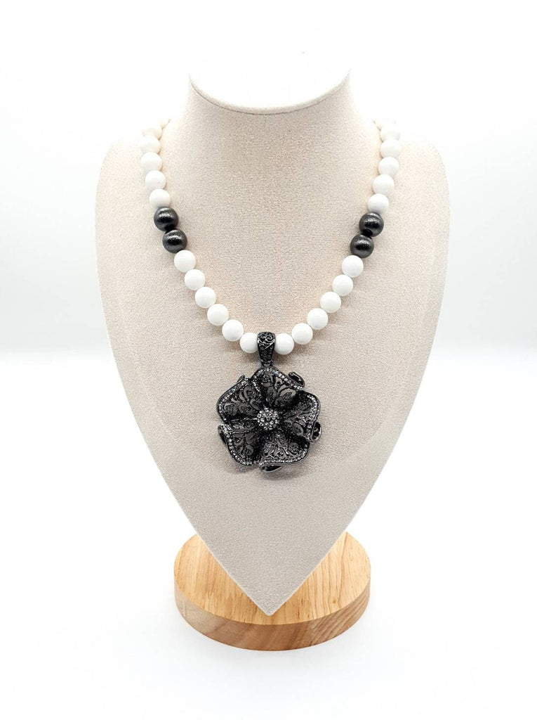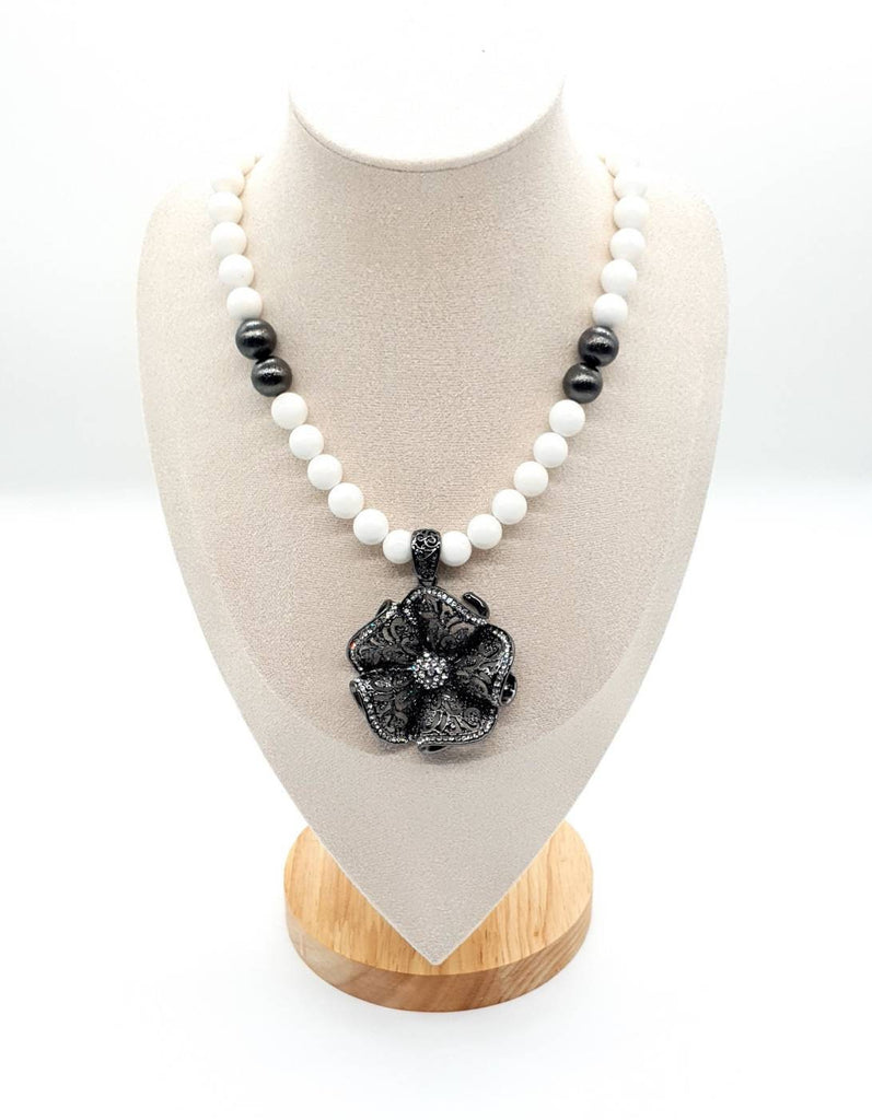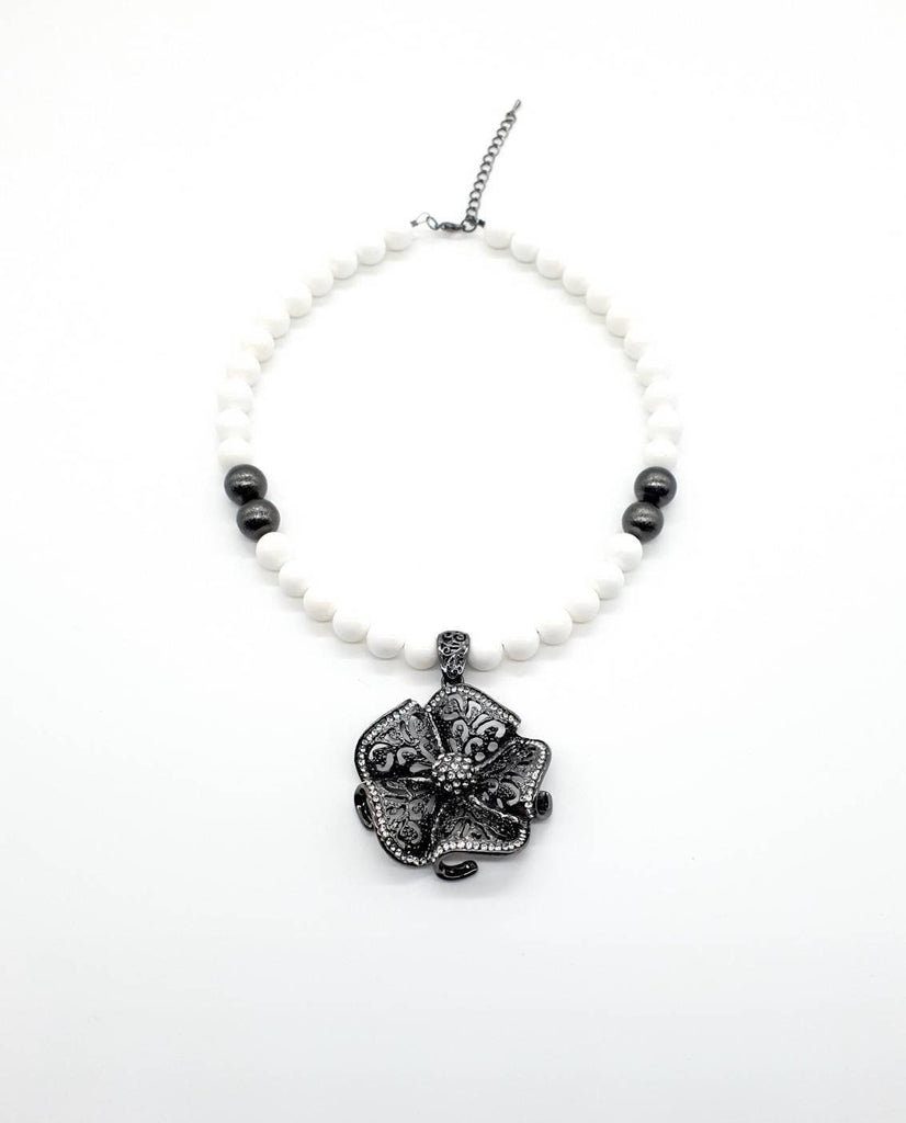 White Beaded Vintage Flower Pendant Necklace